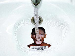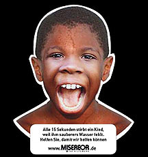 die Besucher des Stückes "Mutter Afrika" auf, für sauberes Wasser zu spenden. Ausgezeichnet an den New York Festivals mit einer Goldmedaille.